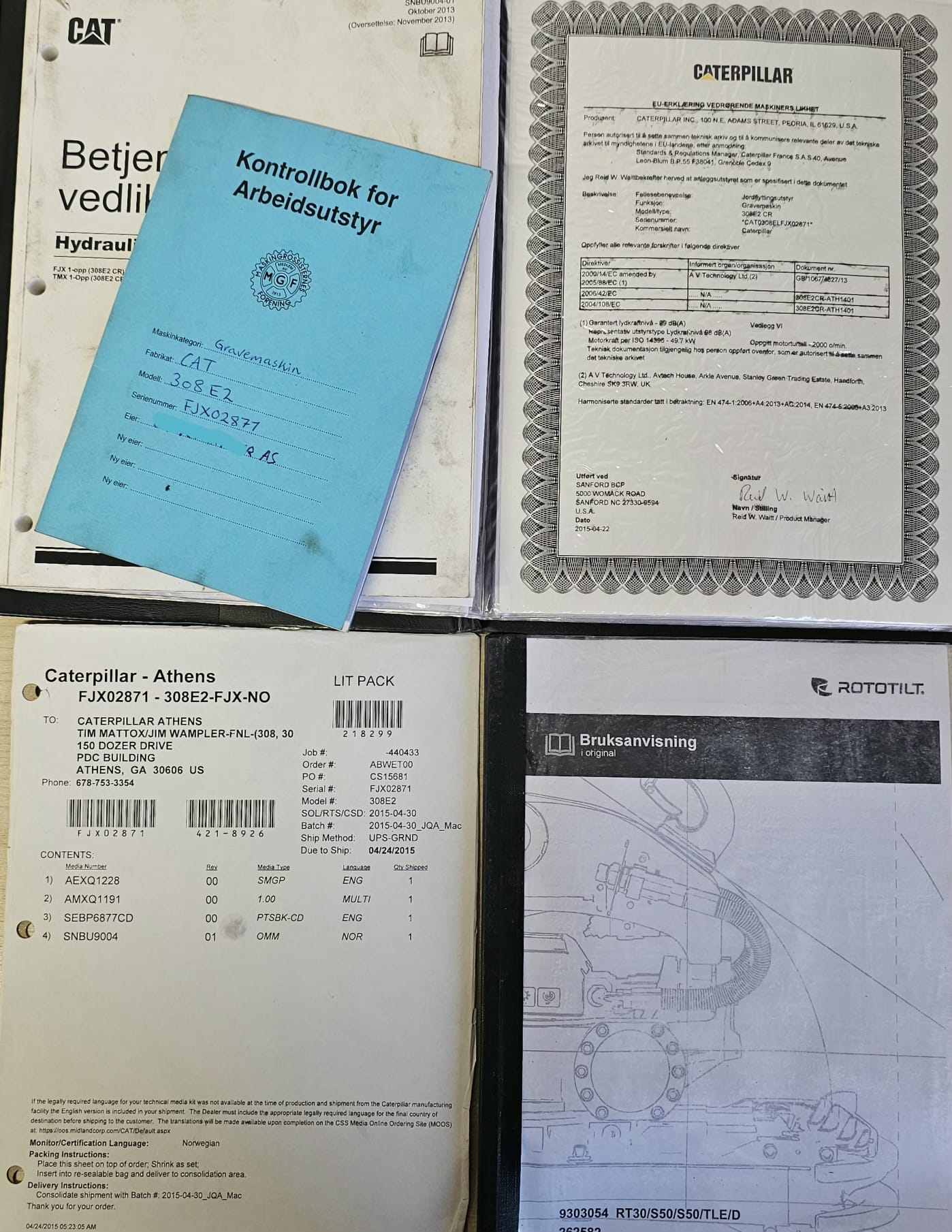 CAT 308E2 CR, 2015 Mod, 3980 timer, Rotortilt og 2 skuffer, Ny sertifisering og service.