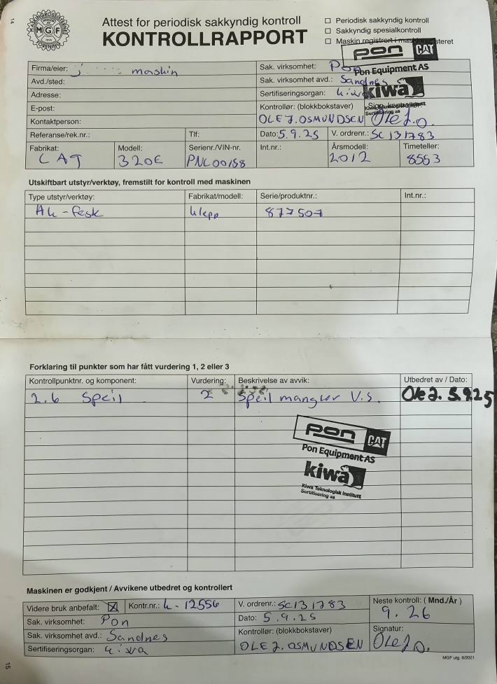 Pen og velholdt maskin i god teknisk stand. Alle servicer er utført av Pon, og maskinen er nylig sertifisert og servet.