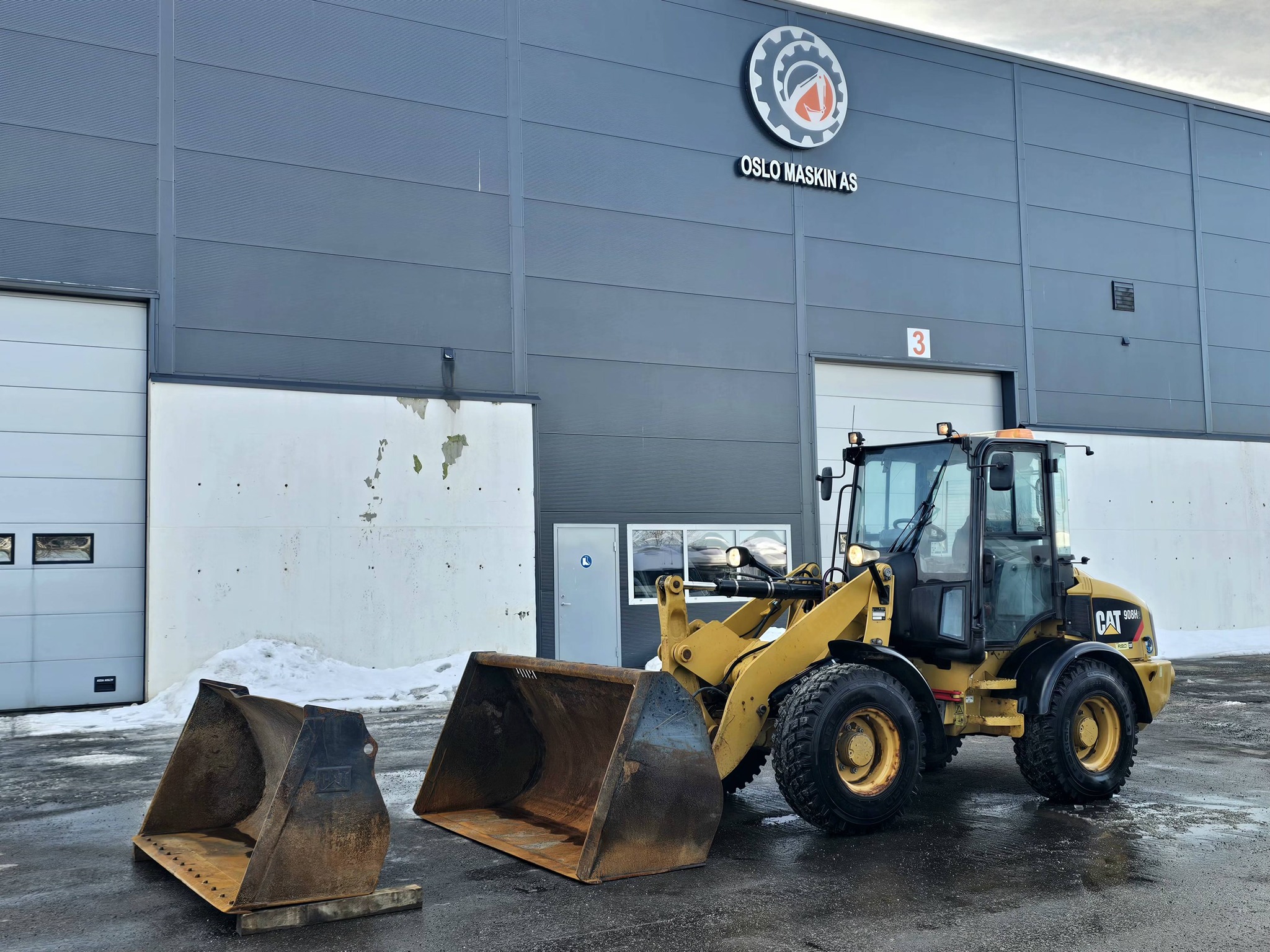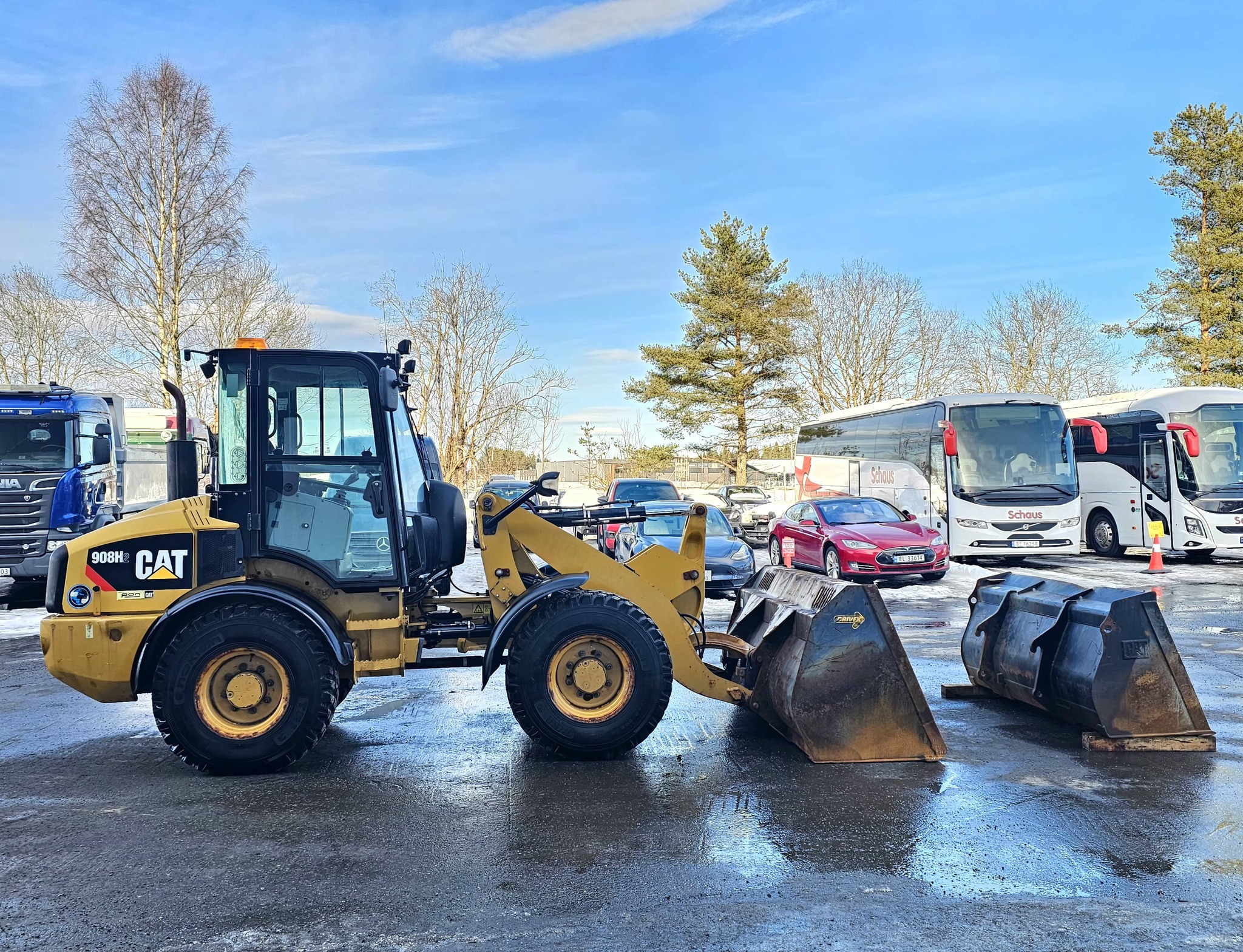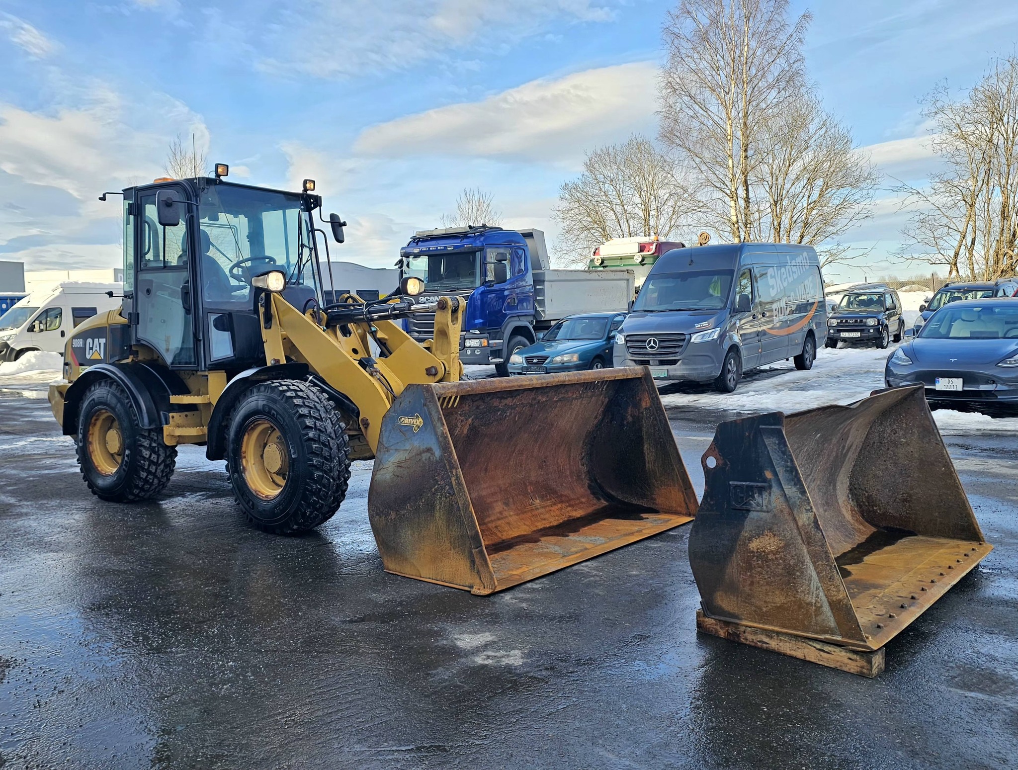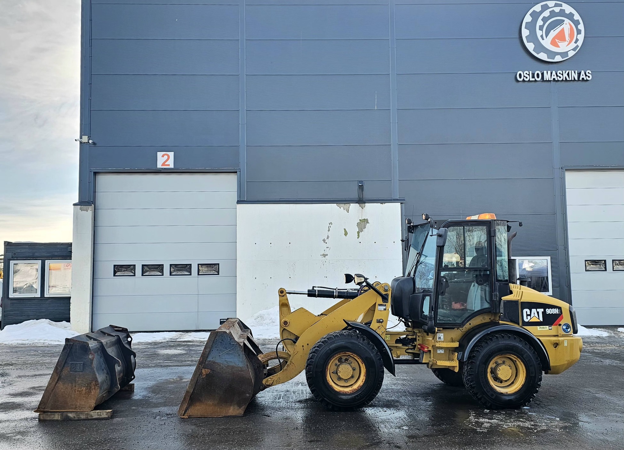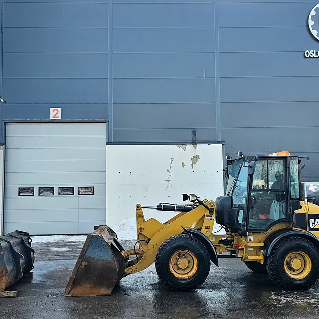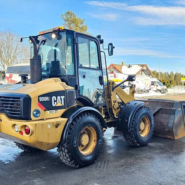CAT 908H2 hjullaster, 2014 mod, 6000 timer, 2 Skuffer, BM-FESTE, Hydraulikkuttak og strømuttak foran, Nylig sertifisert.