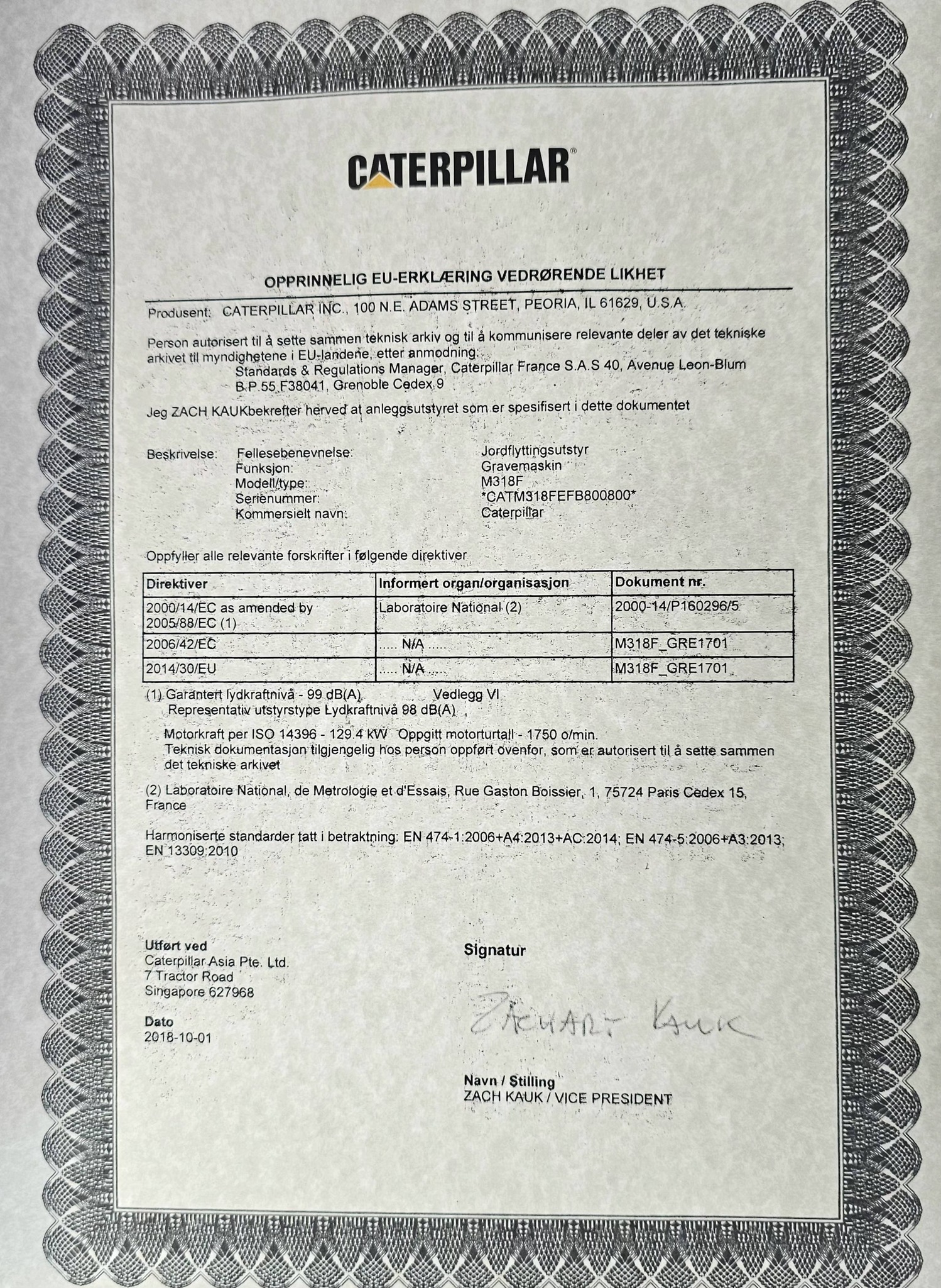 CAT M318 F