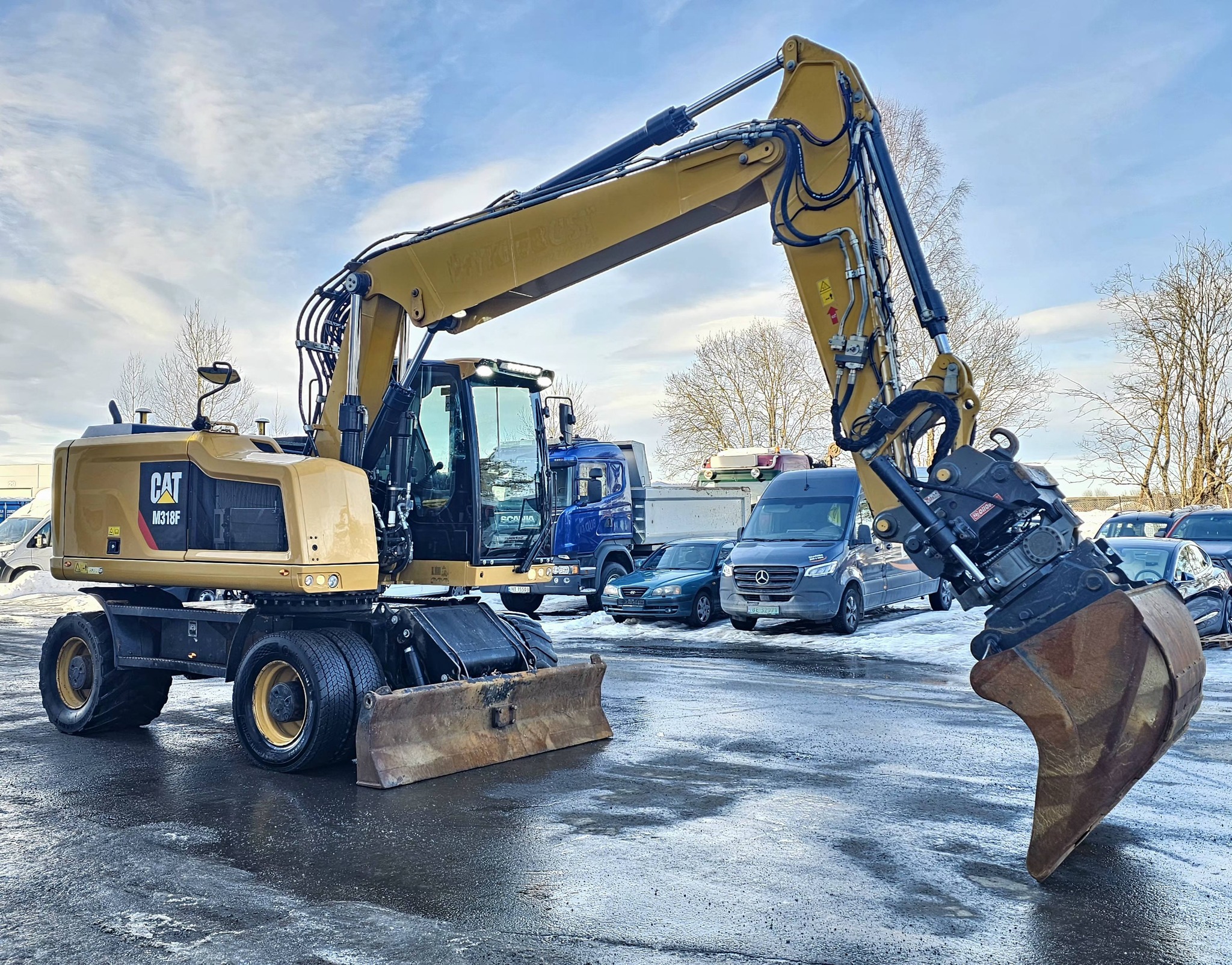 CAT M318F, 2018 mod | GPS | Rototilt OilQuick | Hengerfeste med brems og tipp | Sentralsmøring.