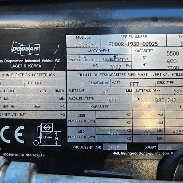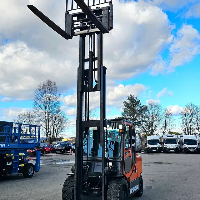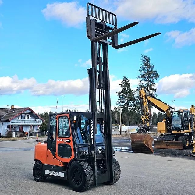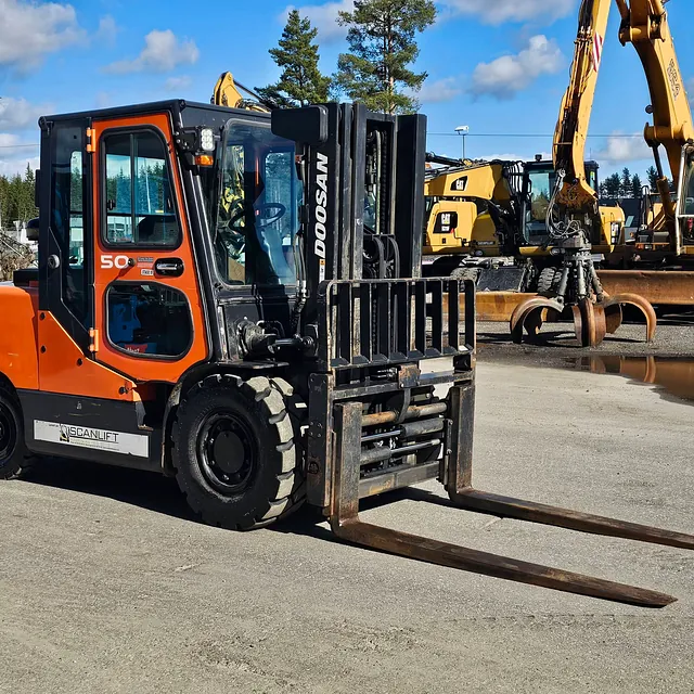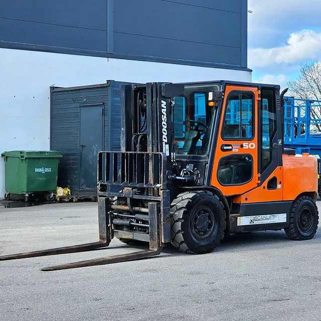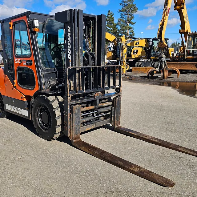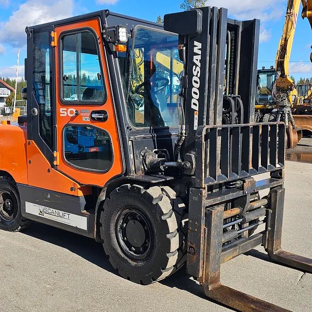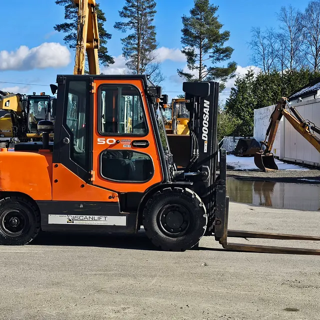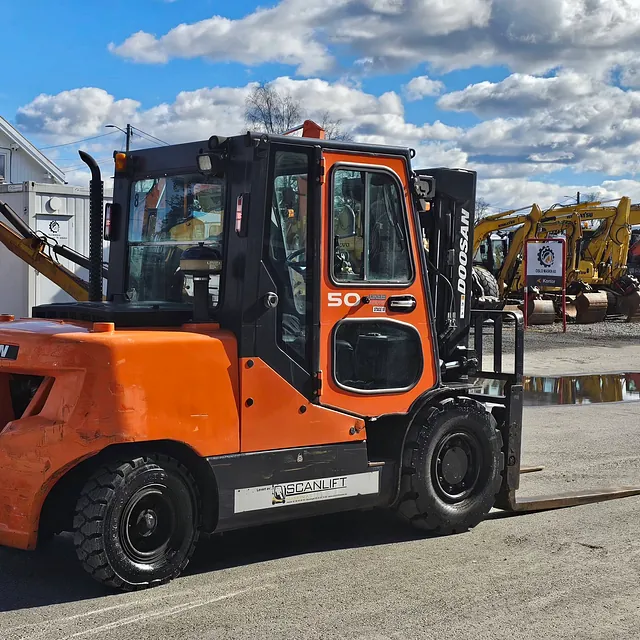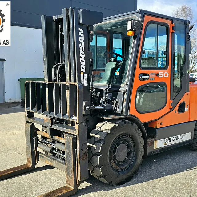 Selger en solid og driftssikker Doosan D50SC-7 gaffeltruck, Anleggs dekk, Helt nye bakdekk og gode dekk foran, i daglig bruk og virker som den skal se video: https://youtu.be/Cji_HkUAx4Y?is=N2aDlIaCJz_5cLPb