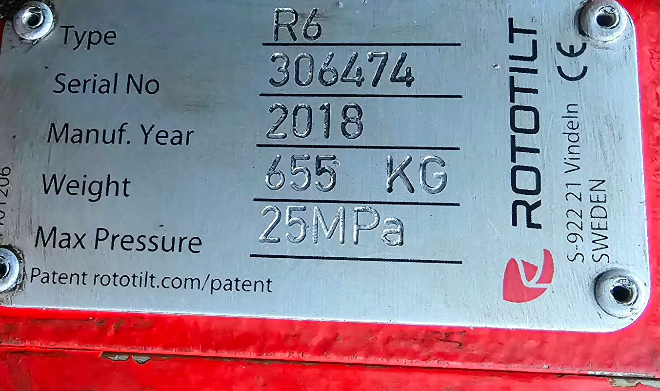 - Rototilt R6, med Hydraulikkuttak