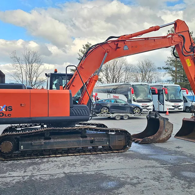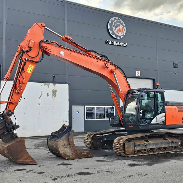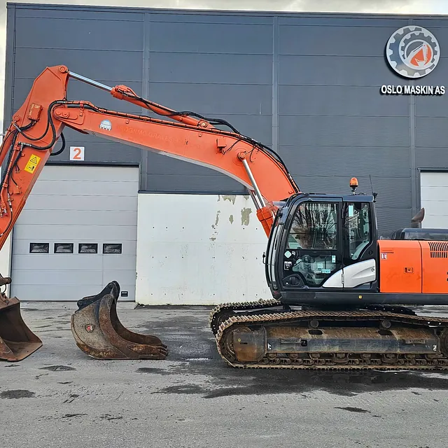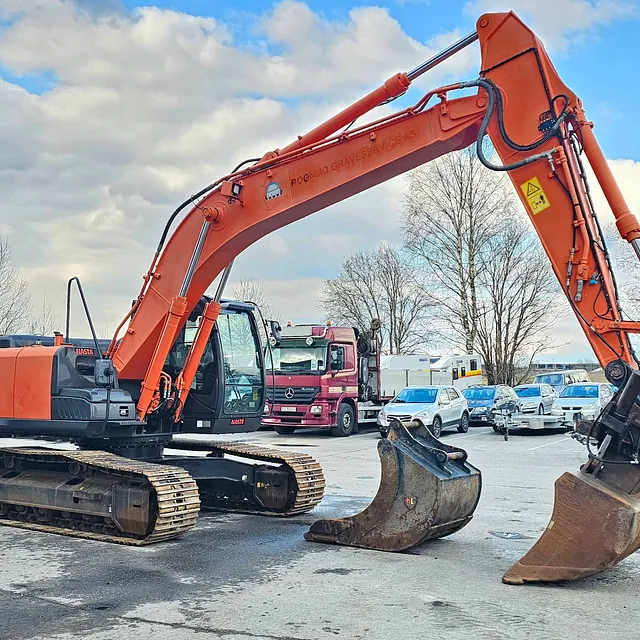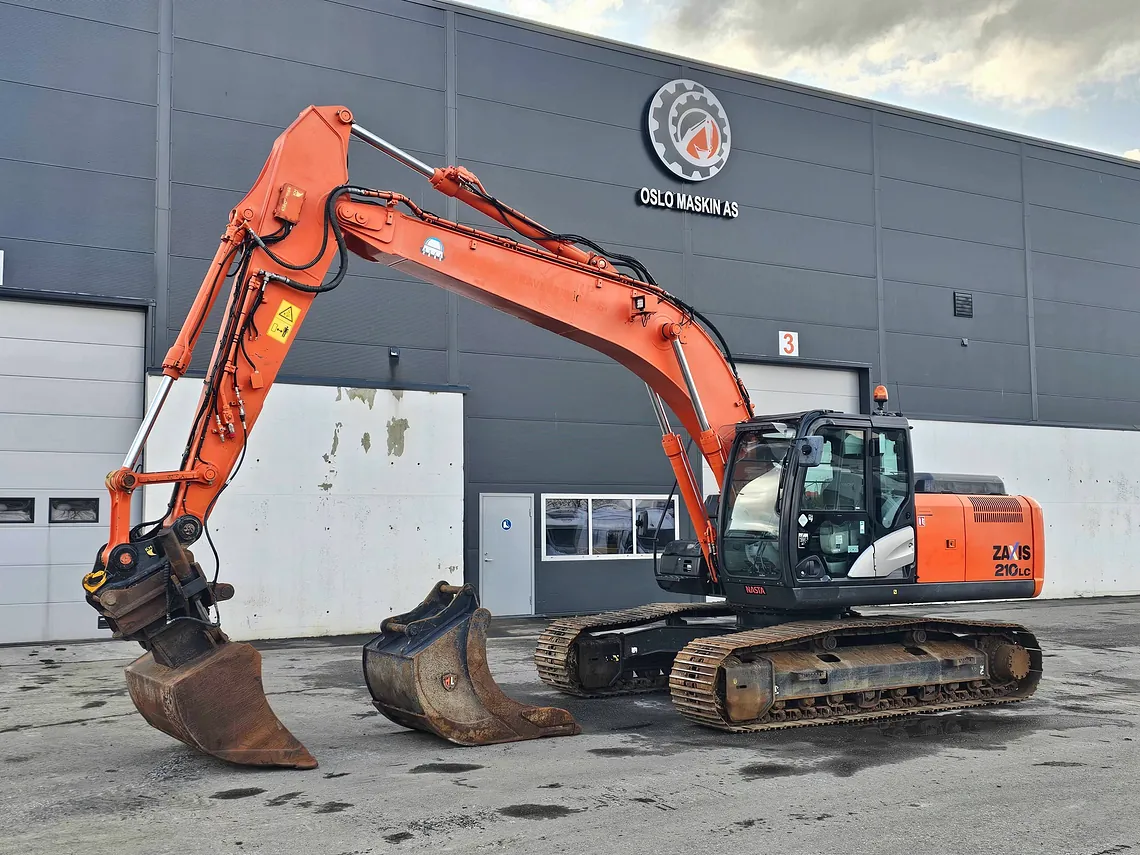 Meget pen og velholdt Hitachi ZX210LC-5B, 2014-modell, med 9 423 timer. 9 000-timers service er utført, og alle servicer er fulgt opp hos Nasta (Hitachi-forhandler). Neste 500-timers service skal utføres om ca. 80 timer, leveres med ny sertifisering.