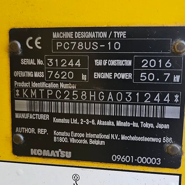 Komatsu PC78US-10, 2016 modell, 7470 Timer, Sertifisert og alle service er tatt, klar for bruk, maskinen i god teknisk stand og kun en eier. nesten ingen slark og gode belter, Noen kosmetiske riper og mindre skader på utvendige deksler, se bilder og video: https://youtu.be/3U6bhcFQT_s?si=q3TXowz2Eoaci0rh