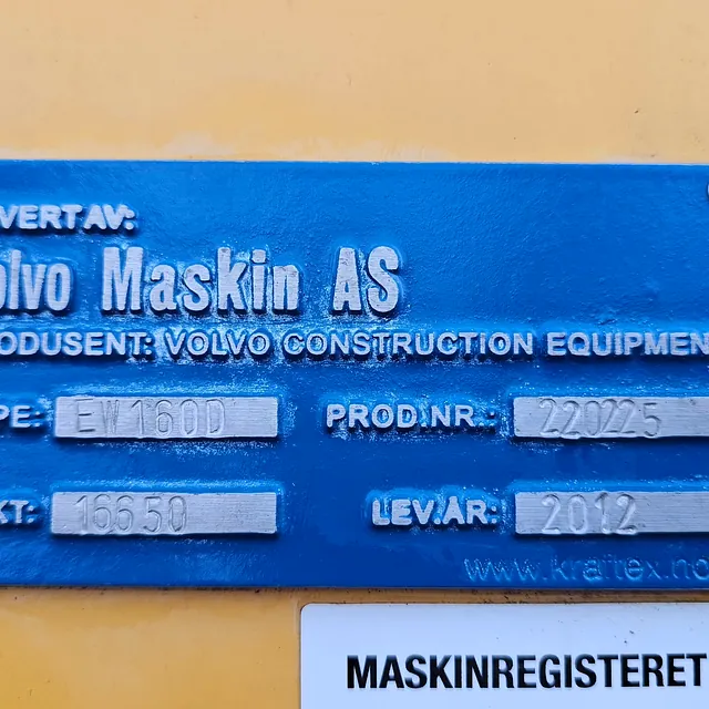 Hjulgraver Volvo EW160 D, 2012 Modell, meget pen og velholdt maskin i god teknisk stand og virker som den skal, alle servicer er tatt hos Volvo Service, én eier, Solgt ny i Norge ikke bruke import, Se video: https://youtu.be/K1S3PvYbwkA?si=A873mFq4U3rUe6ph